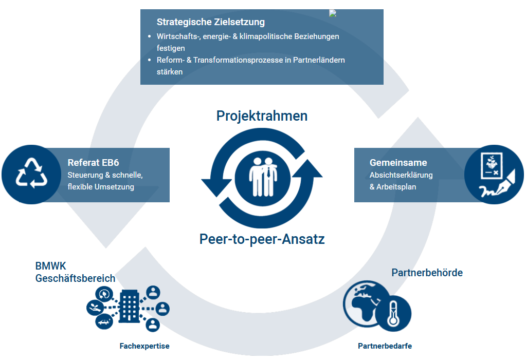 Mit Verwaltungspartnerschaften stärkt das BMWE seine internationalen Beziehungen in den Themenbereichen Wirtschaft sowie Energie- und Klimapolitik. Dabei spielen Außenwirtschaftsförderung und die Verbesserung der Rahmenbedingungen in Zielmärkten der deutschen Wirtschaft ebenso wie Energiesicherheit und die Transformation hin zu klimaneutralen Gesellschaften eine wichtige Rolle.